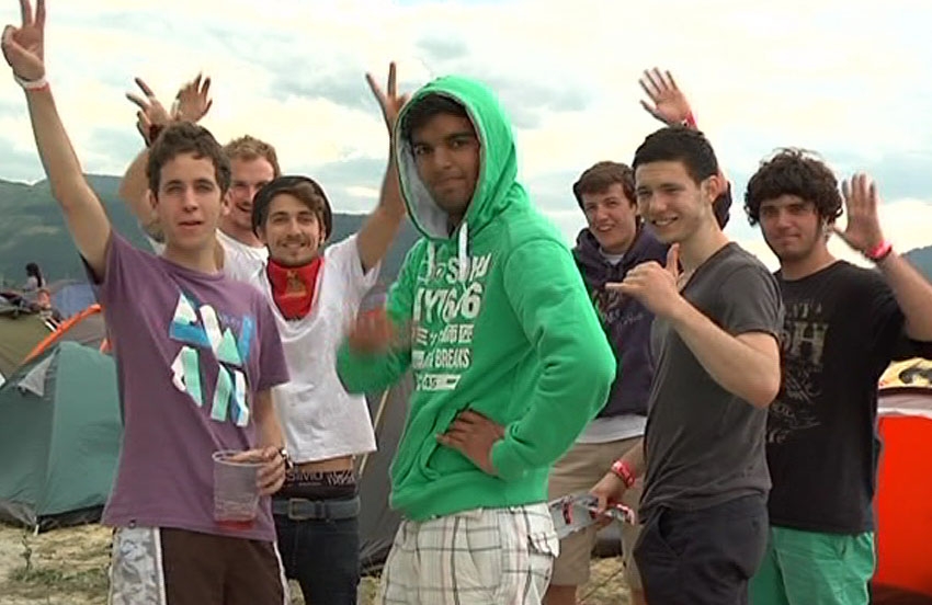 Milaka lagun biltzen dira Kobetamendiko kanpaldian. Han ere jai giroa da nagusi.